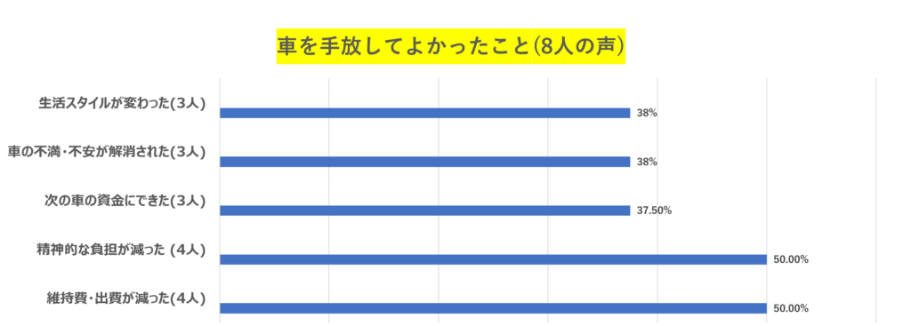 • 車を手放してよかった理由として、「経済的・精神的な負担が減った」という声が多く寄せられていた。