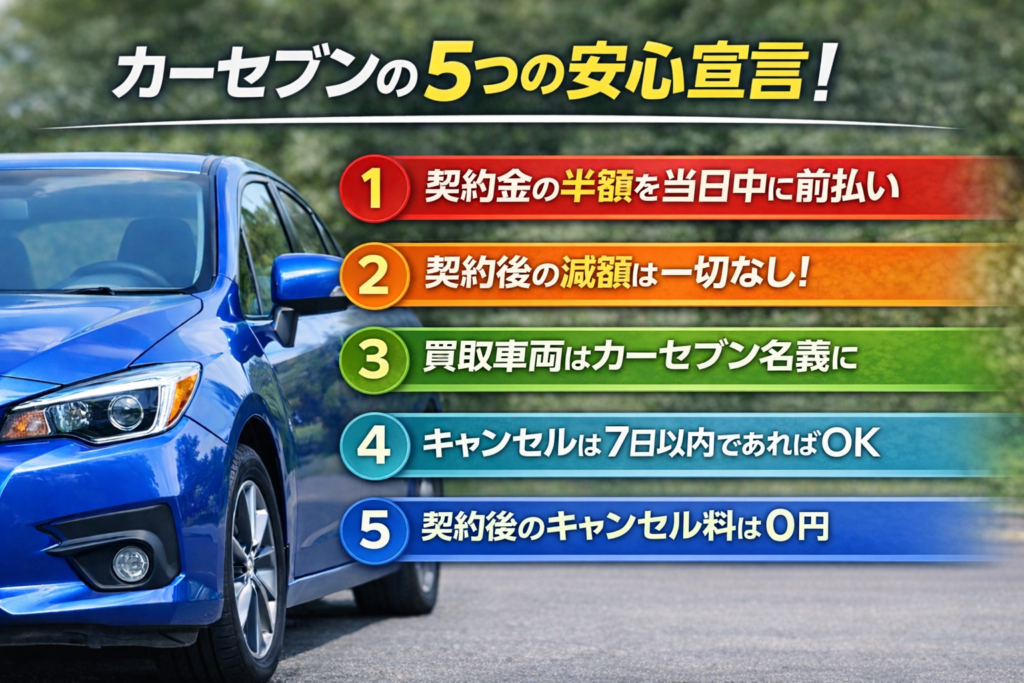 ちなみに、カーセブンは以下の5つの安心宣言を公式サイトに明記しています。