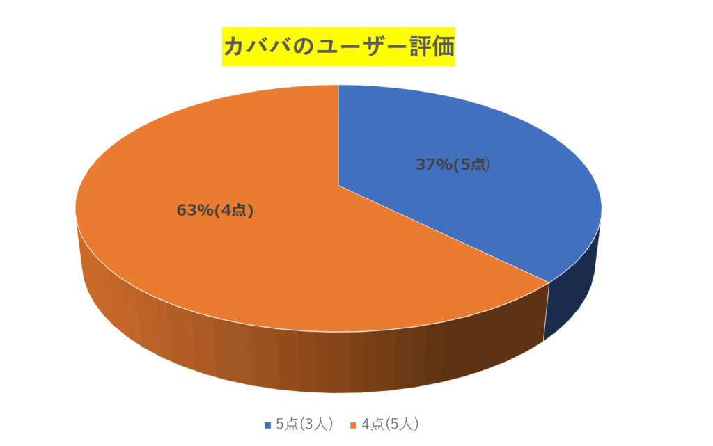 上記円グラフをみてのとおり、8人中全員がカババのサービスに対して4点以上の評価を付けています。