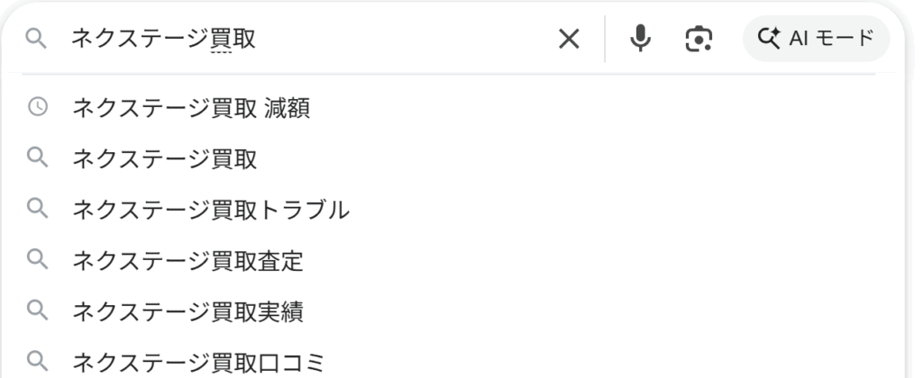 つまり、一定数は「ネクステージ買取+怪しい」を検索しているということですね。