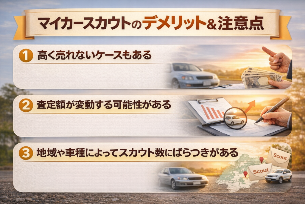 ここでは、マイカースカウトのデメリット&注意点を詳しくみていきます。