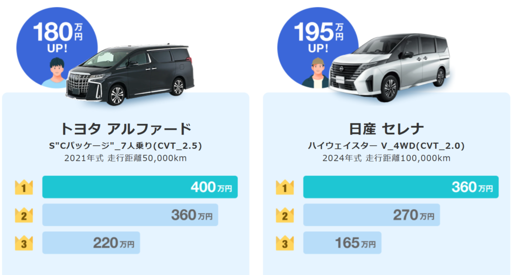「1円でも高く売りたい」という方は、カービュー一括査定との併用がおすすめです。