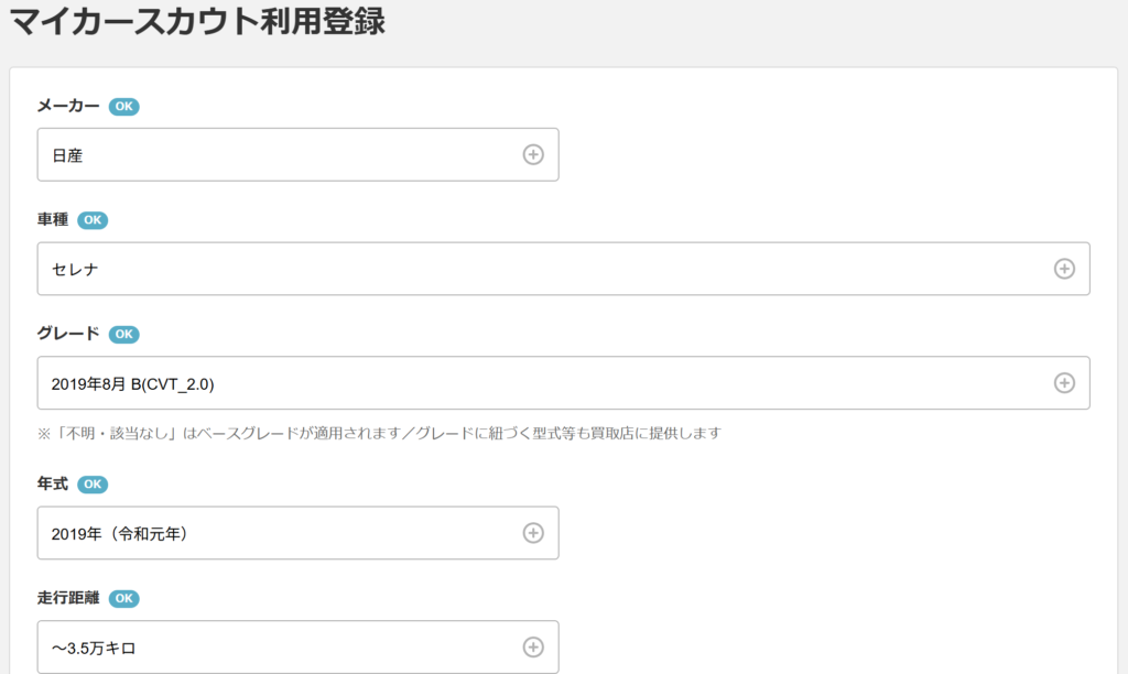 マイカースカウトは車両情報を登録するだけでスカウトが届く仕組みになっています。
