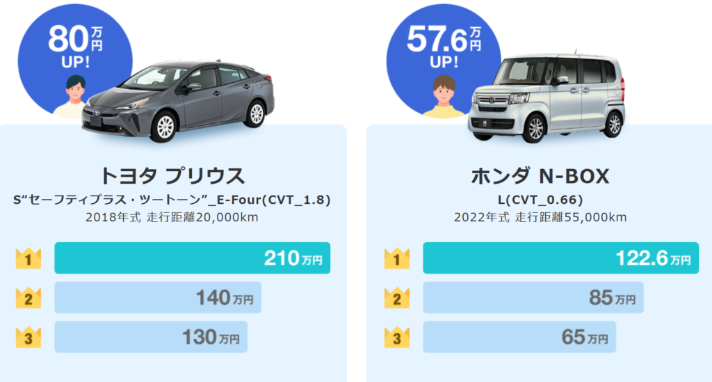 実際には、傷・凹み、修復歴や事故歴の有無、タイヤの状態などによっても買取金額が変動します。
