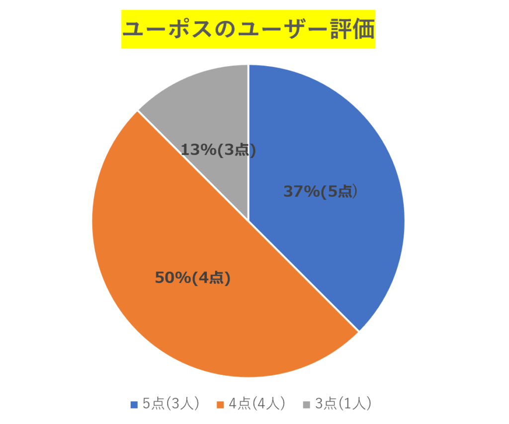 ユーポスの評価は非常に良く、評価の平均は☆4.25です。