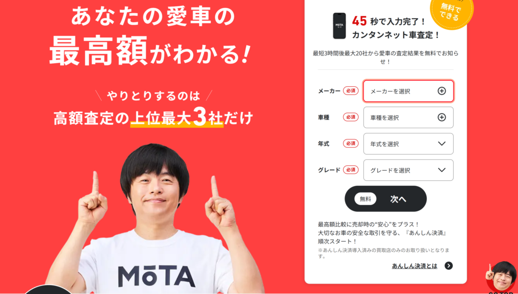 まずは、一括査定.JPの公式サイトから査定を完了させましょう。