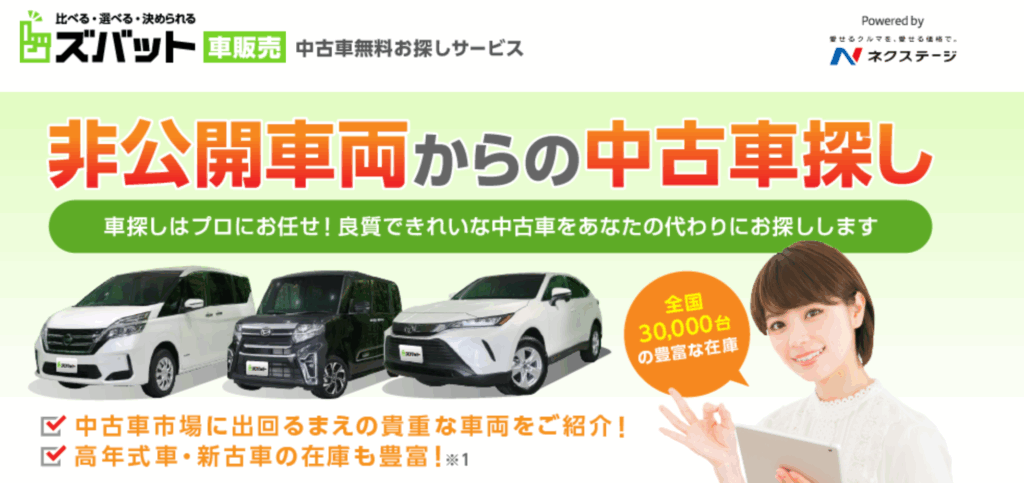 ちなみに、「自分に最適な愛車を見つけたい」という方は、ズバット車販売の利用がおすすめです。