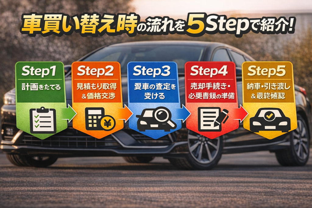 ここでは、車買い替え時の流れを5stepで詳しく紹介します。