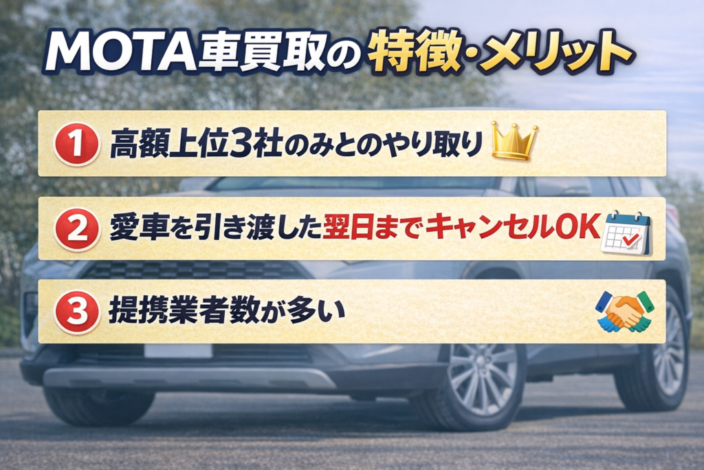 ここでは、MOTA車買取の特徴・メリットを詳しく説明します。